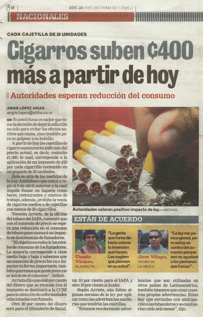 [pullquote_left]La gente que fuma debería valorar la inversión que hacen. Les sugiero que piensen en su salud[/pullquote_left]